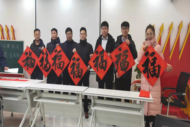 贴“福”字,是迎新春必不可少的传统项目。每年年末,不少书画艺术家都会走出书斋,以送“福”的形式来祈福新年。为弘扬中华优秀传统文化,迎接新春佳节的到来,近日,恒大名都社区党支部邀请山东省商业职业技术学院书画教研室曹怀义主任及多位社区书法爱好者走进济南幸福城小区挥毫泼墨,为居民送“福”到家。能源集团机关党员、入党积极分子等20余人参加此次活动。