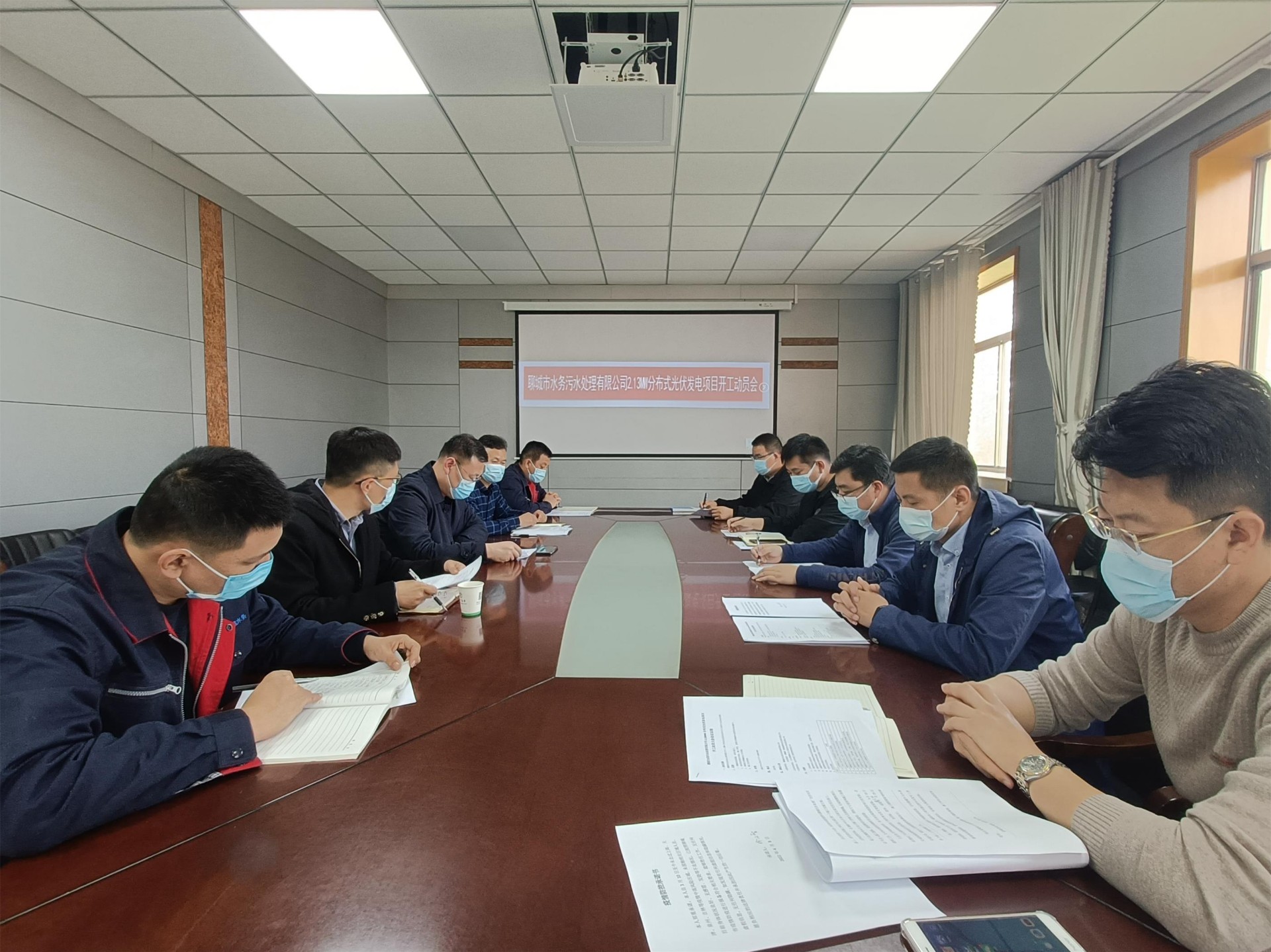 PA直营:4月8日下午,聊城市水务污水处理有限公司2.13MW分布式光伏发电项目召开开工动员会。