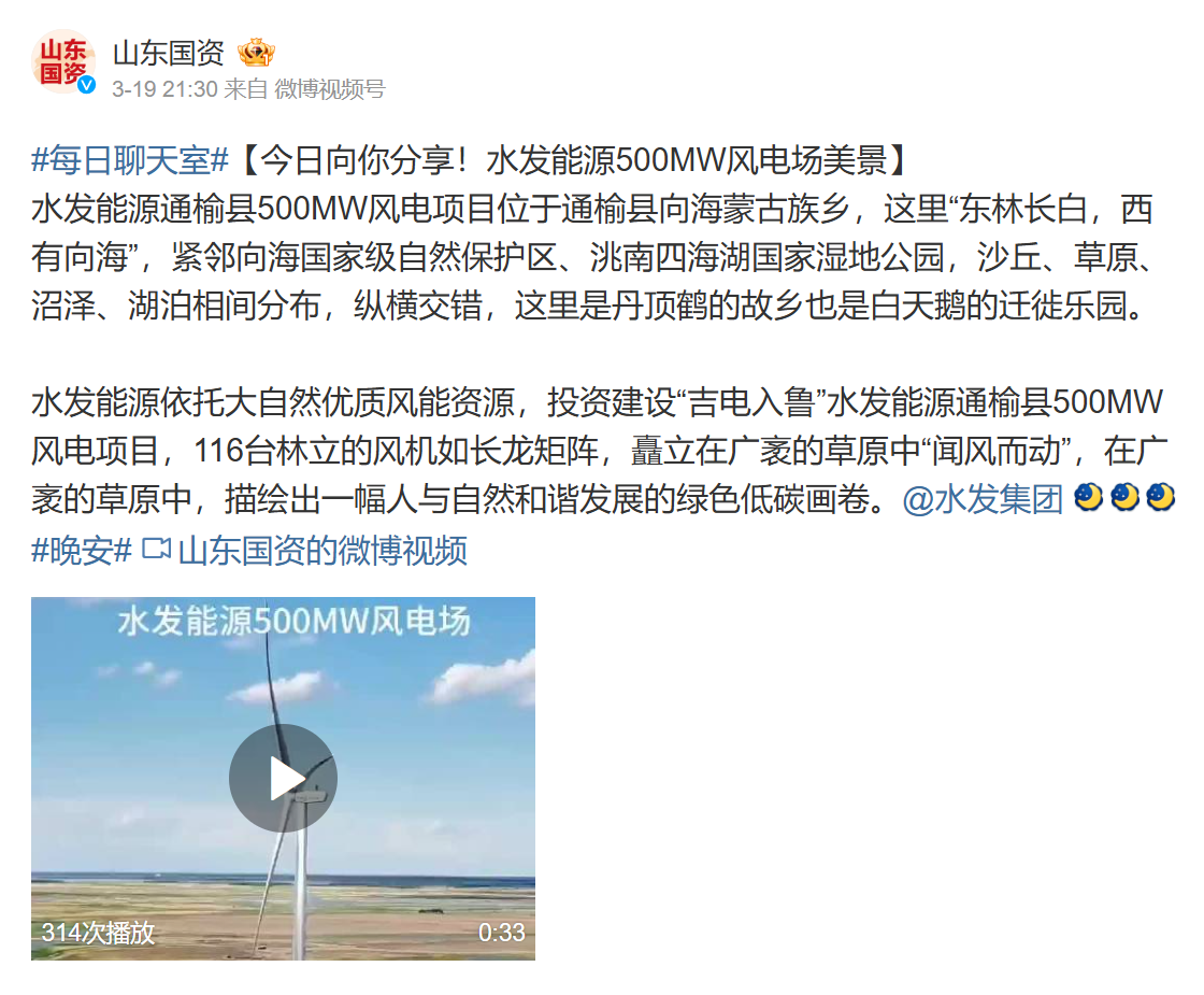 PA直营:【山东国资】今日向你分享!水发能源500MW风电场美景
